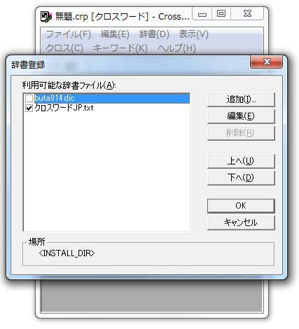 ダウンロードした「クロスワードJP」辞書を登録します。